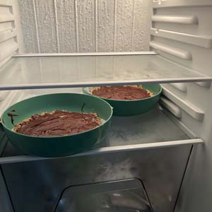 Take mixture and press into baking pan or bowl make as even as possible